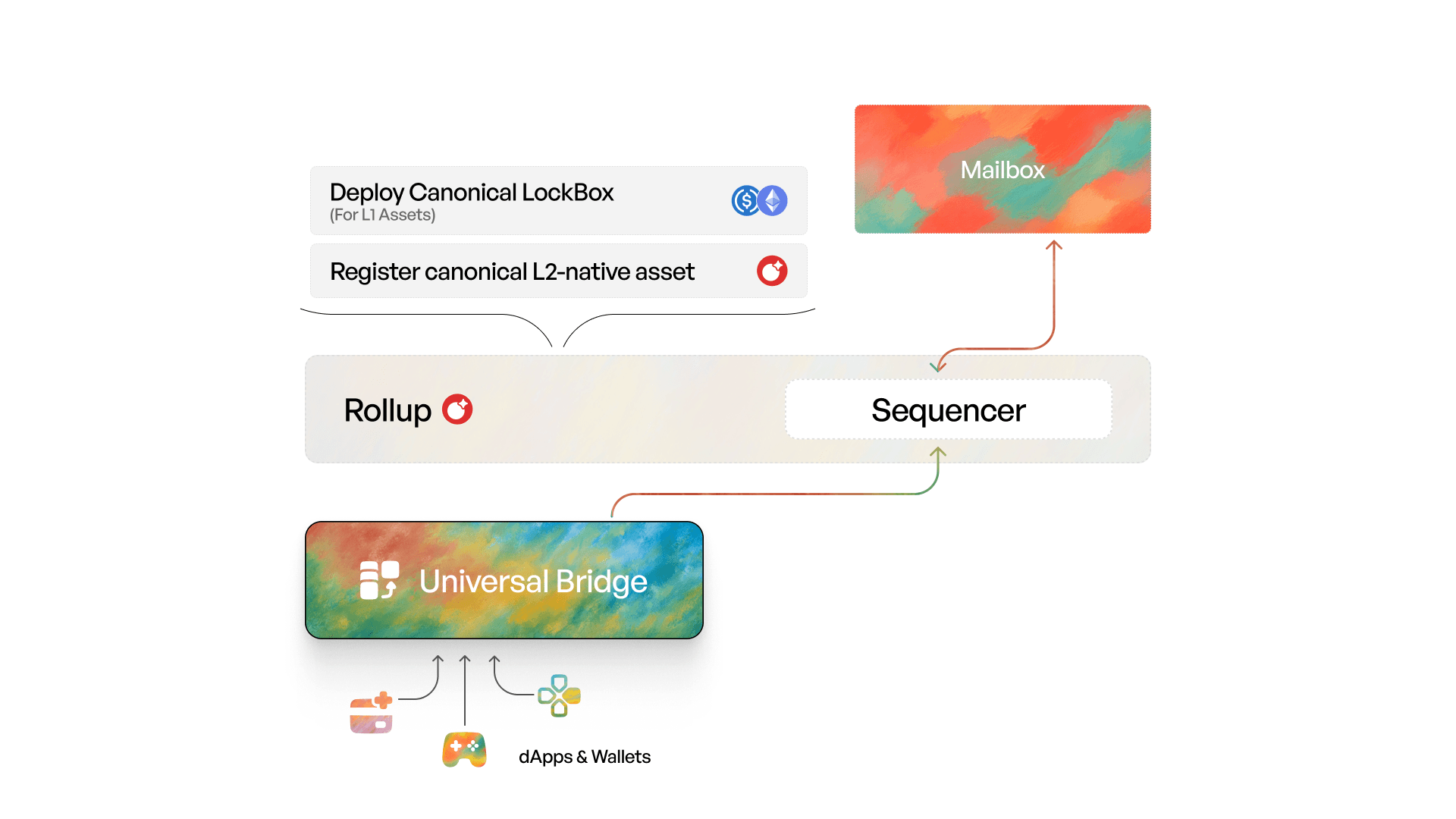 Let the universal bridge handle mint/burn + settlement (you don’t need to write custom bridge adapters per rollup).